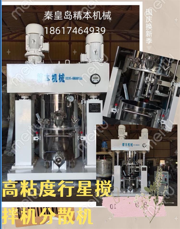 行星攪拌機(jī)通常有2個(gè)或3個(gè)多層折頁(yè)式槳葉,槳葉在公轉(zhuǎn)的同時(shí)也自轉(zhuǎn),使物料上下及四周流動(dòng),從而可在很短時(shí)間內(nèi)達(dá)到混合效果。行星攪拌機(jī)缸體內(nèi)壁為大型立車(chē)精加工,再經(jīng)大型拋光機(jī)自動(dòng)拋光,確保行星架上的活動(dòng)刮刀在旋轉(zhuǎn)時(shí),把缸體內(nèi)壁上的物料完全刮掉;該機(jī)特別適合膏體、高黏度、高密度的物料溶解、混合、混煉、聚合等。